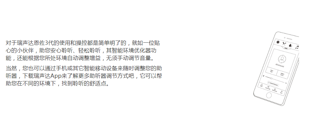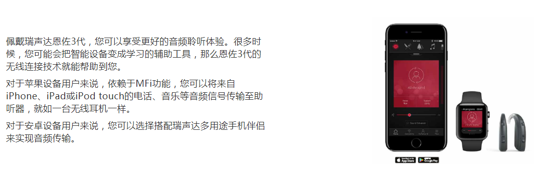 為重度至極重度聽損用戶提供幫助。融合瑞聲達經典的智能方向性技術以及基于2.4GHz無線技術的連接方式,通過調整環(huán)境設置,優(yōu)化用戶聆聽。即便提供更大的功率輸出,但并不以犧牲音質為代價。